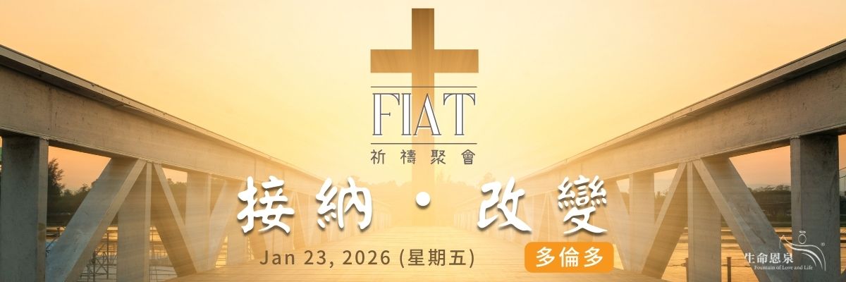 《生命恩泉》季度FIAT祈禱聚會之《接納 ᐧ 改變》將於 2026年1月23日 (星期五) 舉行,誠意邀請您攜同家人和朋友一起參與!