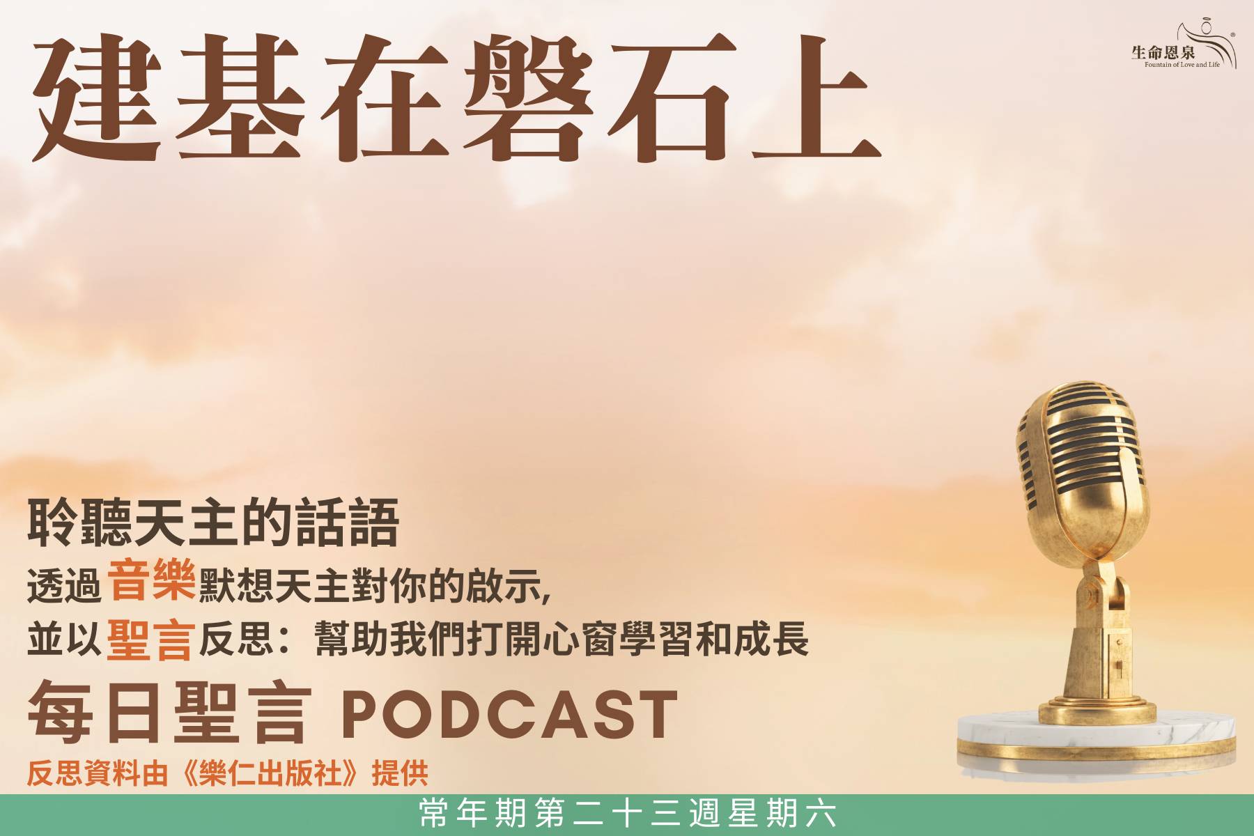 「凡到我跟前,聽了我的道理而實行的,我要給你們指出,他相似什麼人:他相似一個建造房屋的人,掘地深挖,把基礎建立在磐石上,洪水瀑發時,大水沖擊那座房屋,而不能動搖它,因為它建築得好。但那聽了而不實行的,相似人在平地上不打基礎而建造房屋,洪水一沖擊,那房屋立刻傾倒,且破壞得很慘。」 —上主的福音。