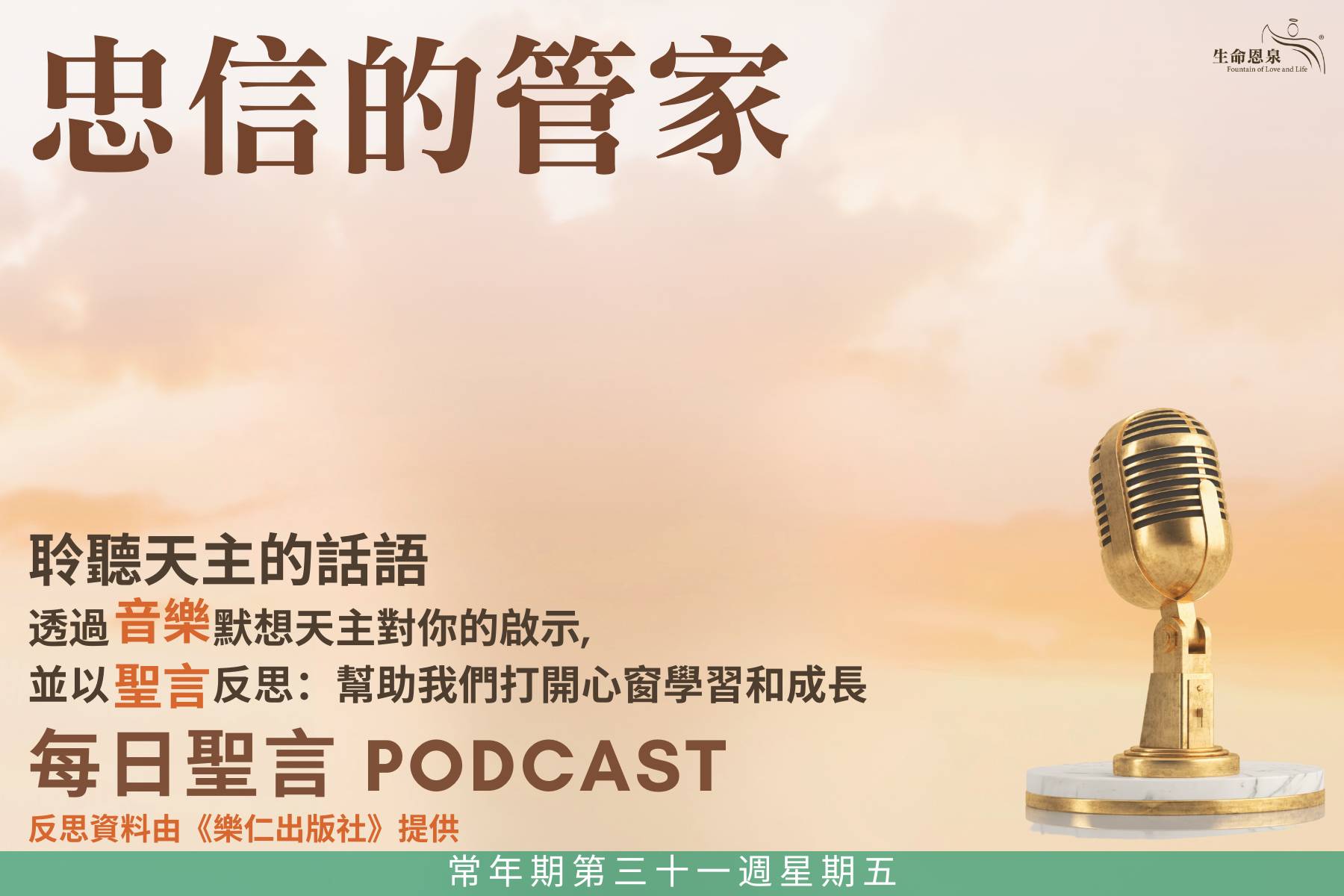 那時候,耶穌對門徒說:「曾有一個富翁,他有一個管家;有人在主人前告發這管家揮霍了主人的財物。主人便把他叫來,向他說:我怎麼聽說你有這樣的事呢?把你管理家務的賬目交出來,因為你不能再作管家了。那管家自言自語道:主人要撤去我管家的職務,我可做什麼呢?掘地罷,我沒有氣力;討飯罷,我又害羞。我知道我要做什麼,好叫人們在我被撤去管家職務之後,收留我在他們家中。於是他把主人的債戶一一叫來,對第一個說:你欠我主人多少?那人說:一百桶油。管家向他說:拿你的賬單,坐下快寫作五十。隨後,又對另一個說:你欠多少?那人說:一百石麥子。管家向他說:拿你的賬單,寫作八十。主人遂稱讚這個不義的管家,辦事精明:這些世俗之子應付世俗的事務,比光明之子更為精明。」 —上主的福音。