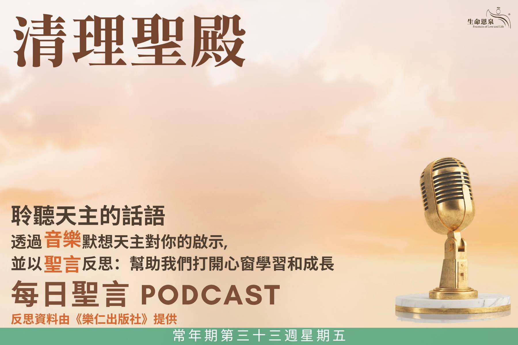 聖殿乃祈禱之所,整日守在聖殿裡的人,卻把聖殿弄成了賊窩。這是耶穌義怒、驅逐商人出聖殿的原因。人在聖殿裡向天主祈禱,亦如人在心裡向聖神呼求。耶穌天天在聖殿裡教導人,但那些反對祂、心裡只有自己和金錢,而沒有天主的人,卻總想設計除掉祂。就像我們心被私慾和俗物充滿,耶穌無法進入一樣。然而,眾百姓聽耶穌講話卻聽得出神。當人肯聽耶穌了,天主的話就進入人心,以人心做居所,成聖殿。
