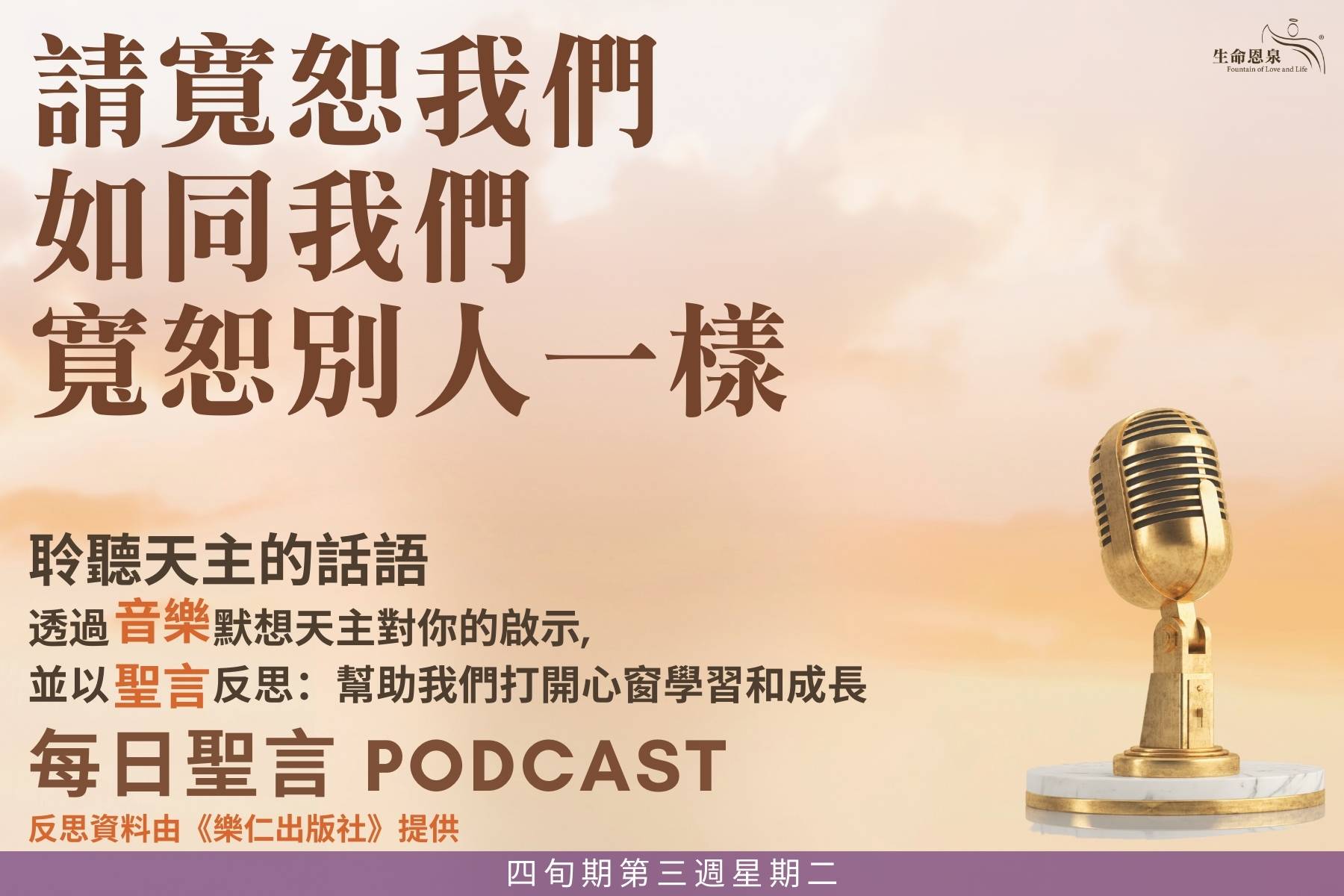 那時,伯多祿前來對耶穌說:「主啊!若我的弟兄得罪了我,我該寬恕他多少次?直到七次嗎?」耶穌對他說:「我不對你說:直到七次,而是到七十個七次。為此天國好比一個君王,要同他的僕人算賬。他開始算賬的時候,給他送來了一個欠他一萬「塔冷通」的,因他沒有可還的,主人就下令,要他把自己和妻子兒女,以及他所有的一切,都變賣來還債。那僕人就俯伏在地叩拜他說:主啊!容忍我吧!一切我都要還給你。那僕人的主人就動心把他釋放了,並且也赦免了他的債。但那僕人正出去時,遇見了一個欠他一百「德納」的同伴,他就抓住他,扼住他的喉嚨說:還你欠的債!他的同伴就俯伏在地哀求他說:容忍我吧!我必還給你。可是他不願意,且把他下在監裡,直到他還清了欠債。他的同伴見到所發生的事,非常悲憤,遂去把所發生的一切告訴了主人。於是主人把那僕人叫來,對他說:惡僕!因為你哀求了我,我赦免了你那一切的債;難道你不該憐憫你的同伴,如同我憐憫了你一樣嗎?他的主人大怒,遂把他交給刑役,直到他還清所欠的一切。如果你們不各自從心裡寬恕自己的弟兄,我的天父也必要這樣對待你們。」 —上主的福音。