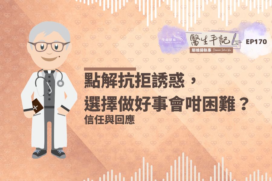 Podcast電台節目 【醫生手記】Ep170 – 點解抗拒誘惑,選擇做好事會咁困難? | 信任與回應 by Keith Fung 2026-02-21 2026-02-21 我們應當全然信任天主,哪怕天主讓我們背起十架負重前行,也是衪所給予祝福。 標籤漁人的漁夫管教十架羔羊的婚宴掌握天國夢欣賞回應感恩誘惑喜樂祝福休息關係信任四旬期相信跟隨彌撒聆聽決定分段節目類別醫生手記語言粵語 FacebookTwitterPinterestEmail 相關資訊 醫生手記 【醫生手記】Ep169 – 點樣可以同不同性格嘅人建立,甚至打好關係? | MBTI 16型人格 2026-02-14 【醫生手記】Ep168 – 探病原來好講技巧,唔係坐喺到就叫陪伴。 | 同理心 2026-02-07 【醫生手記】Ep167 – 唔好諗住做part time基督徒! | 天國派遣的工作 2026-01-31 【醫生手記】Ep166 – 點解你要成為天主教徒? | 與天主建立關係 2026-01-24 【醫生手記】Ep165 – 「平常」其實好重要。 | 跟從天主的帶領 2026-01-17 【醫生手記】Ep164 – 洗者若翰到底係個點樣嘅人? | 耶穌的先驅 2026-01-10 瀏覽更多相關節目/資訊 其他音頻分段節目 【每日聖言】使人再造的邂逅 | 聖灰禮儀後星期六 2026-02-20 【神修話語】二零二六年二月二十一日 2026-02-20 【保祿家書】迦拉達書 Ep 11 – 迦 5:1-12恩許的自由決不可放棄。 2026-02-20 【駱曦 愛生命 隨想】二零二六年二月二十一日 2026-02-20 【每日聖言】為何禁食? | 聖灰禮儀後星期五 2026-02-19 【每日聖言】信仰堅定帶來生命 | 聖灰禮儀後星期四 2026-02-18 【每日聖言】放下所有面具 | 聖灰禮儀星期三 2026-02-18 【每日聖言】農曆新春 | 常年期第六週星期二 2026-02-16 【每日聖言】農曆除夕團圓 | 常年期第六週星期一 2026-02-15 【醫生手記】Ep169 – 點樣可以同不同性格嘅人建立,甚至打好關係? | MBTI 16型人格 2026-02-14 【每日聖言】饑者的食物 | 常年期第五週星期六 聖濟利祿隱修士及聖默多狄主教(紀念) 2026-02-13 【神修話語】二零二六年二月十四日 2026-02-13 【駱曦 愛生命 隨想】二零二六年二月十四日 2026-02-13 【每日聖言】能夠聆聽 | 常年期第五週星期五 2026-02-12 【每日聖言】不僅是碎屑 | 常年期第五週星期四 2026-02-11 【每日聖言】純潔誠摯的心 | 常年期第五週星期三 露德聖母(紀念) 2026-02-10 【每日聖言】聖殿的存在是為了人 | 常年期第五週星期二 聖思嘉(貞女)(紀念) 2026-02-09 【每日聖言】一位近可觸摸的天主 | 常年期第五週星期一 2026-02-08 【醫生手記】Ep168 – 探病原來好講技巧,唔係坐喺到就叫陪伴。 | 同理心 2026-02-07 【問問程神父】- Ep 97 – 教會團體中,包容與紀律失衡所引發的衝突與牧靈處理 2026-02-07 【每日聖言】信仰的智慧 | 常年期第四週星期六 2026-02-06 【神修話語】二零二六年二月七日 2026-02-06 【駱曦 愛生命 隨想】二零二六年二月七日 2026-02-06 【每日聖言】兩位偉人 | 常年期第四週星期五 聖保祿三木司鐸及同伴(殉道)(紀念) 2026-02-05 瀏覽更多分段節目