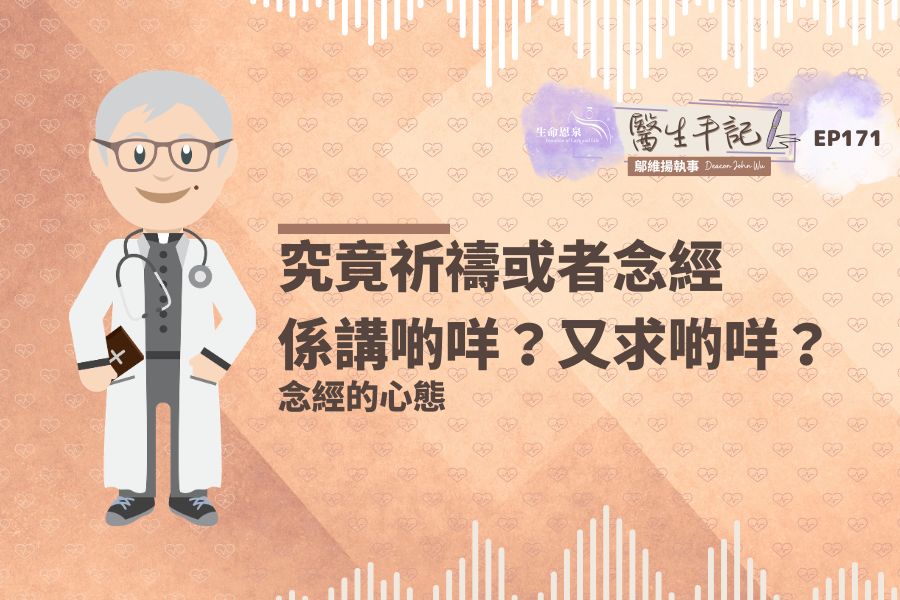 Podcast電台節目 【醫生手記】Ep171 – 究竟祈禱或者唸經係講啲咩?又求啲咩? | 唸經的心態 by Keith Fung 2026-02-28 2026-02-28 唸經不單單只是誦讀,而是求天主的恩寵讓我們能夠活出經文的意義,願我們的一生是一篇讚美天主的經文。 標籤撕裂打擊貴重借花敬佛懇切配合天國夢誠心光榮天主回應過失臨在人性齋戒鼓勵服從施捨四旬期恩寵跟隨祈禱聆聽分段節目類別醫生手記講者鄔維揚執事 Deacon John Wu語言粵語 FacebookTwitterPinterestEmail 相關資訊 醫生手記 【醫生手記】Ep170 – 點解抗拒誘惑,選擇做好事會咁困難? | 信任與回應 2026-02-21 【醫生手記】Ep169 – 點樣可以同不同性格嘅人建立,甚至打好關係? | MBTI 16型人格 2026-02-14 【醫生手記】Ep168 – 探病原來好講技巧,唔係坐喺到就叫陪伴。 | 同理心 2026-02-07 【醫生手記】Ep167 – 唔好諗住做part time基督徒! | 天國派遣的工作 2026-01-31 【醫生手記】Ep166 – 點解你要成為天主教徒? | 與天主建立關係 2026-01-24 【醫生手記】Ep165 – 「平常」其實好重要。 | 跟從天主的帶領 2026-01-17 瀏覽更多相關節目/資訊 其他音頻分段節目 【每日聖言】宗教精神應是內在的,而非偽善 | 四旬期第二週星期二 2026-03-02 【每日聖言】罪人尋求寬恕 | 四旬期第二週星期一 2026-03-01 【每日聖言】無償的盟約之愛 | 四旬期第一週星期六 2026-02-27 【神修話語】二零二六年二月二十八日 2026-02-27 【駱曦 愛生命 隨想】二零二六年二月二十八日 2026-02-27 【每日聖言】個人的責任,感恩祭與和好 | 四旬期第一週星期五 2026-02-26 【每日聖言】只有祢是我的救援 | 四旬期第一週星期四 2026-02-25 【每日聖言】皈依 | 四旬期第一週星期三 2026-02-24 【每日聖言】由天主而來的聖言和講給天主的話 | 四旬期第一週星期二 2026-02-23 【每日聖言】愛鄰人,在人們中間與主相遇 | 四旬期第一週星期一 2026-02-22 【醫生手記】Ep170 – 點解抗拒誘惑,選擇做好事會咁困難? | 信任與回應 2026-02-21 【每日聖言】使人再造的邂逅 | 聖灰禮儀後星期六 2026-02-20 【神修話語】二零二六年二月二十一日 2026-02-20 【保祿家書】迦拉達書 Ep 11 – 迦 5:1-12恩許的自由決不可放棄。 2026-02-20 【駱曦 愛生命 隨想】二零二六年二月二十一日 2026-02-20 【每日聖言】為何禁食? | 聖灰禮儀後星期五 2026-02-19 【每日聖言】信仰堅定帶來生命 | 聖灰禮儀後星期四 2026-02-18 【每日聖言】放下所有面具 | 聖灰禮儀星期三 2026-02-18 【每日聖言】農曆新春 | 常年期第六週星期二 2026-02-16 【每日聖言】農曆除夕團圓 | 常年期第六週星期一 2026-02-15 【醫生手記】Ep169 – 點樣可以同不同性格嘅人建立,甚至打好關係? | MBTI 16型人格 2026-02-14 【每日聖言】饑者的食物 | 常年期第五週星期六 聖濟利祿隱修士及聖默多狄主教(紀念) 2026-02-13 【神修話語】二零二六年二月十四日 2026-02-13 【駱曦 愛生命 隨想】二零二六年二月十四日 2026-02-13 瀏覽更多分段節目