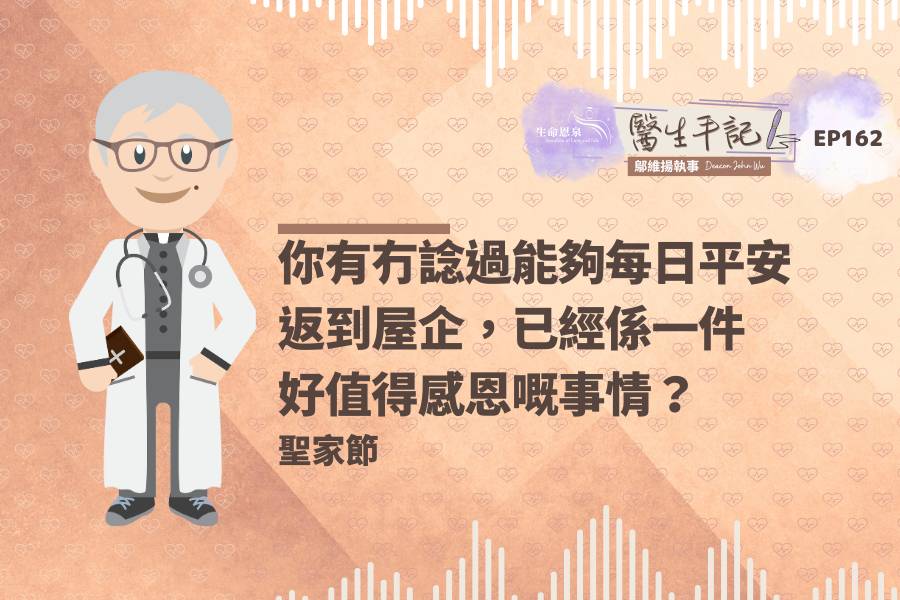 Podcast @enRadio Program “Doctor’s Diary” Ep162 by Keith Fung 2025-12-27 2025-12-27 TagsDoctorsDiaryDoctorsCatholicFountainOfLoveAndLifeDiaryDeaconWuDeaconfamilygratitudesacraments @enpeaceFountain of Love and Life @enPrayerDoctorFeast of the Holy FamilyAudio Segment TypesDoctor's DiarySpeakers鄔維揚執事 Deacon John WuLanguagesCantonese FacebookTwitterPinterestEmail RELATED Doctor's Diary “Doctor’s Diary” Ep164 2025-12-27 “Doctor’s Diary” Ep161 2025-12-20 “Doctor’s Diary” Ep160 2025-12-13 “Doctor’s Diary” Ep159 2025-12-06 “Doctor’s Diary” Ep158 2025-11-29 “Doctor’s Diary” Ep157 2025-11-22 Browse more related audio segment programs Other Audio Segment Programs “Doctor’s Diary” Ep164 2025-12-27 “Spiritual Talk” – December 27, 2025 2025-12-26 “Edwin’s Blog” – December 27, 2025 2025-12-26 “Doctor’s Diary” Ep161 2025-12-20 “Spiritual Talk” – December 20, 2025 2025-12-19 “Edwin’s Blog” – December 20, 2025 2025-12-19 “Doctor’s Diary” Ep160 2025-12-13 “Spiritual Talk” – December 13, 2025 2025-12-12 “Edwin’s Blog” – December 13, 2025 2025-12-12 “Doctor’s Diary” Ep159 2025-12-06 “Spiritual Talk” – December 6, 2025 2025-12-05 “Edwin’s Blog” – December 6, 2025 2025-12-05 “Doctor’s Diary” Ep158 2025-11-29 “Music of the Heart” – Collar 《 Chosen Family 》 2025-11-28 “Spiritual Talk” – November 29, 2025 2025-11-28 “Edwin’s Blog” – November 29, 2025 2025-11-28 “Doctor’s Diary” Ep157 2025-11-22 “Spiritual Talk” – November 22, 2025 2025-11-21 “Edwin’s Blog” – November 22, 2025 2025-11-21 “L&L Coffee House” – Unexpected Moments At The Jubilee Pilgrimage of Youth (ep2) 2025-11-19 “L&L Coffee House” – Jubilee Pilgrimage of Youth (ep1) 2025-11-19 “Doctor’s Diary” Ep156 2025-11-15 “Spiritual Talk” – November 15, 2025 2025-11-14 “Edwin’s Blog” – November 15, 2025 2025-11-14 Browse all audio segment programs